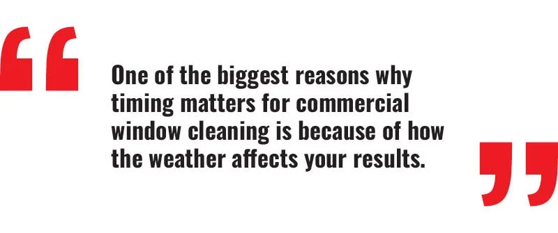 One of the biggest reasons why timing matters for commercial window cleaning is because of how the weather affects your results. Two of the more challenging seasons for window cleaning are summer and winter.